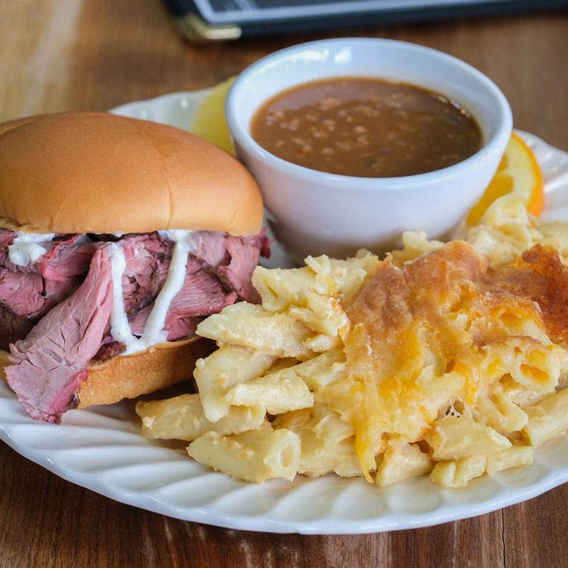 Meat Option: 1/2lb of Pulled Pork (Comes with coleslaw on top) or 1/2lb of Tri-Tip (Comes with horsey sauce).